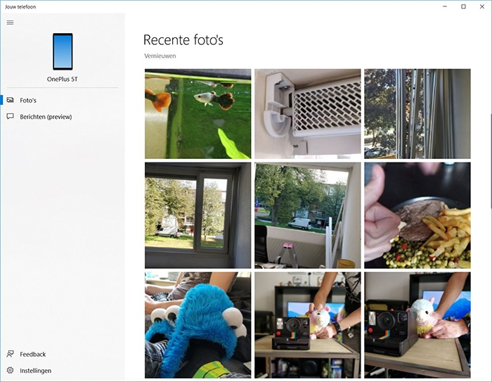 Links zie je nog een optie: Berichten (preview). Hier vind je recente sms'jes terug en kun je antwoorden via je pc. Dat werkt zoals verwacht, maar sms'jes zijn niet meer zo van deze tijd. Er is geen ondersteuning voor o.a. WhatsApp of Facebook Messenger.